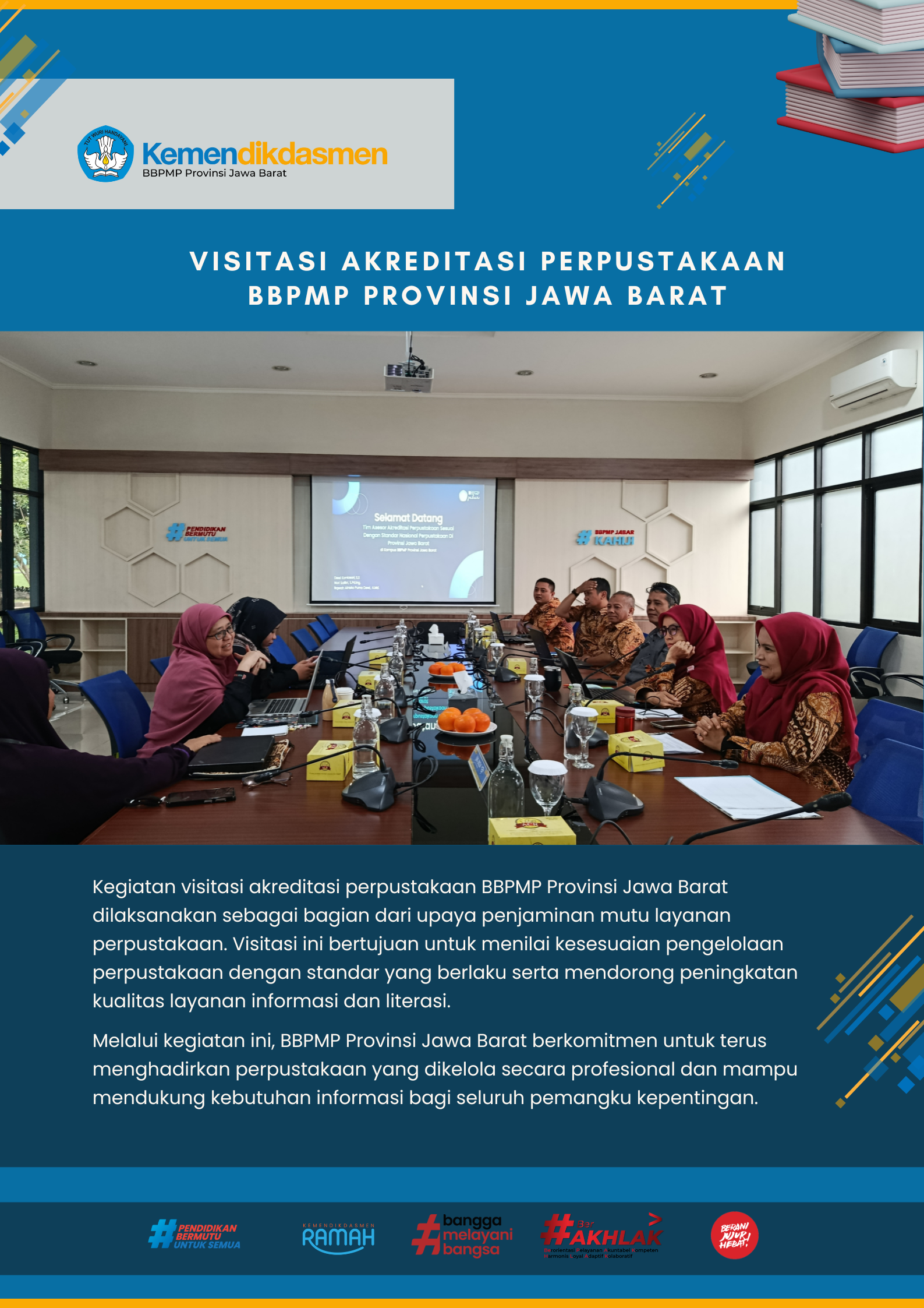 BBPMP Provinsi Jawa Barat melaksanakan visitasi akreditasi perpustakaan sebagai bagian dari upaya penjaminan mutu layanan, yang berlangsung di ruang pertemuan dan ruang perpustakaan dengan melibatkan tim asesor serta pengelola perpustakaan. Proses ini menjadi momentum evaluasi untuk memastikan layanan berjalan optimal sekaligus mendorong perbaikan berkelanjutan.