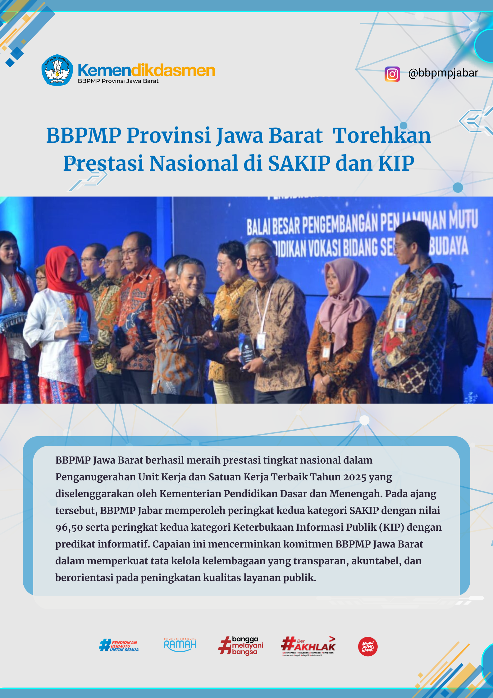 Berbagai informasi kegiatan di lingkungan BBPMP Provinsi Jawa Barat yang kami sajikan ke hadapan Anda dan dikemas dalam bentuk poster.