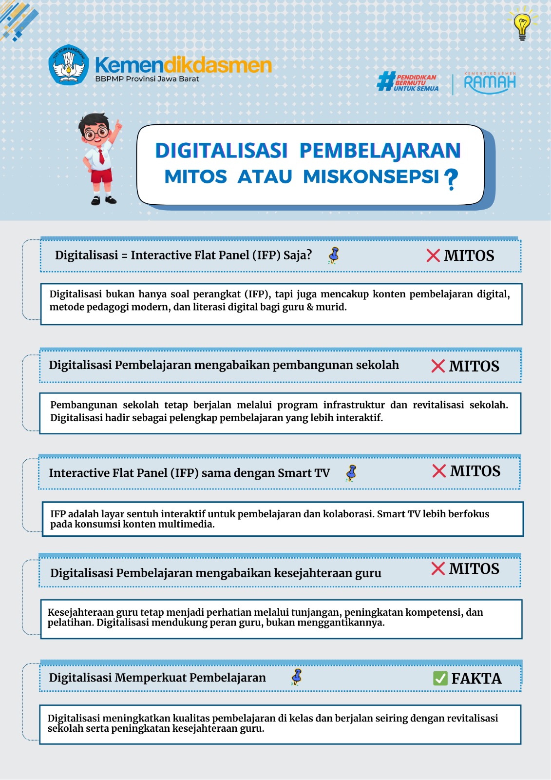 Berikut Mitos dan Fakta terkait Digitalisasi Pembelajaran.