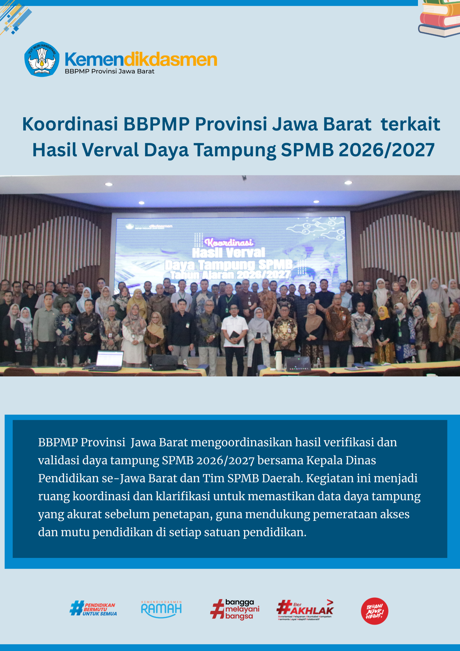 Berbagai informasi kegiatan di lingkungan BBPMP Provinsi Jawa Barat yang kami sajikan ke hadapan Anda dan dikemas dalam bentuk poster.